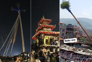 भक्तपुर। भक्तपुरमा मनाइने प्रसिद्ध बिस्का जात्रा अन्तर्गत मंगलबार साँझ मुख्य आकर्षण मानिने ल्योसिंद्य (लिंगो) विधिपूर्वक ढालिएको छ। पूजाआजा पछि साँझ ५ बजेर ४९ मिनेटमा ल्योसिंद्य ढालिएको हो। लिंगो ढाल्नु अघि त्यसमा बेरिएका डोरी फुकाल्ने ‘वल फेनेगू’ प्रक्रिया सम्पन्न गरिएको थियो। त्यसपछि चारैतिरबाट डोरी तानेर लिंगो ढाल्ने क्रममा केही समय तानातान समेत भएको थियो। अन्ततः लिंगो […]