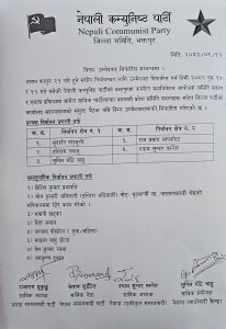 भक्तपुर। नेपाली कम्युनिष्ट पार्टी (नेकपा) भक्तपुरले फागुन २१ गते हुने संघीय निर्वाचनका लागि उम्मेदवार सिफारिस गरेको छ। जिल्ला पार्टी कमिटीको बैठकले प्रत्यक्ष तथा समानुपातिक निर्वाचन प्रणालीतर्फका उम्मेदवारहरूको नाम सर्वसम्मत रूपमा सिफारिस गरेको हो।