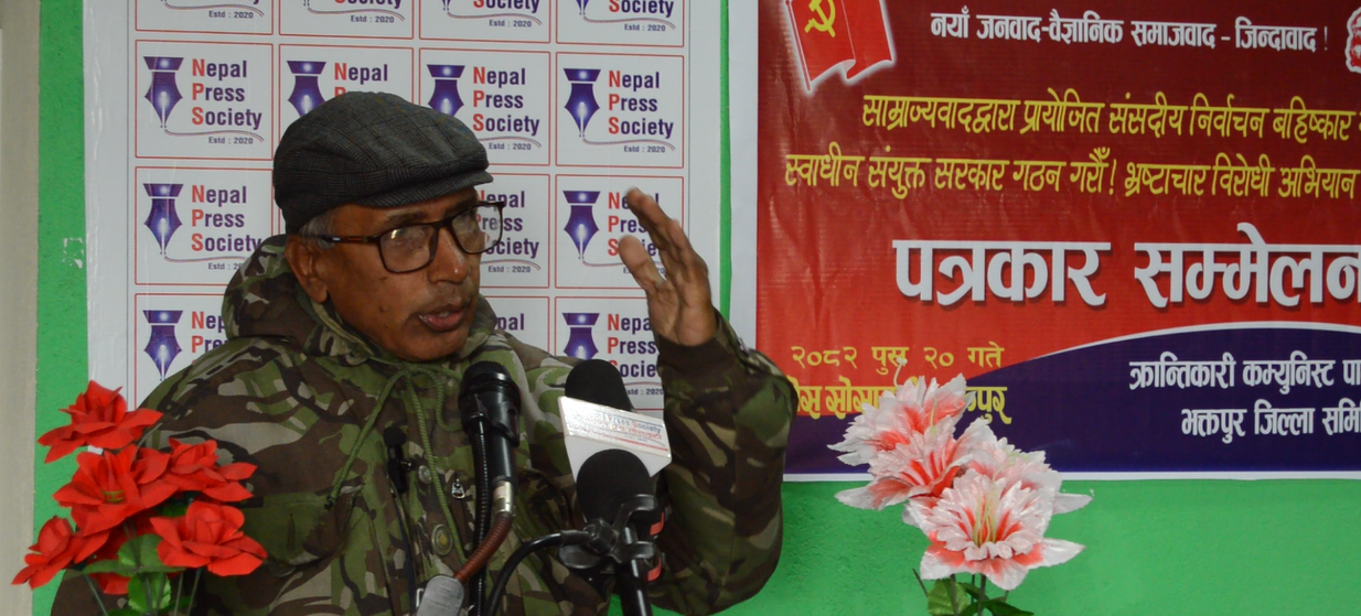 उनले भने , ” यो निर्वाचन संसदवादी राजनीतिक पार्टीका भरपर्दा दलाल नेताहरु र जेनजी विद्रोहका आडमा पैदा भएका नयाँ नेताहरुलाई वैधानिक ढंगबाट सत्ता सुम्पिने प्रपंच हो। हामीहरु यहि कारण यो निर्वाचन बहिस्कार गर्दछौं। “
